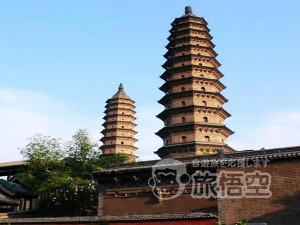 寺の端にある二つの塔は八角13層で、塔内には階段があり、最上階まで上ることができます。塔内の窓からは、太原市内が一望のもとに見渡せます。