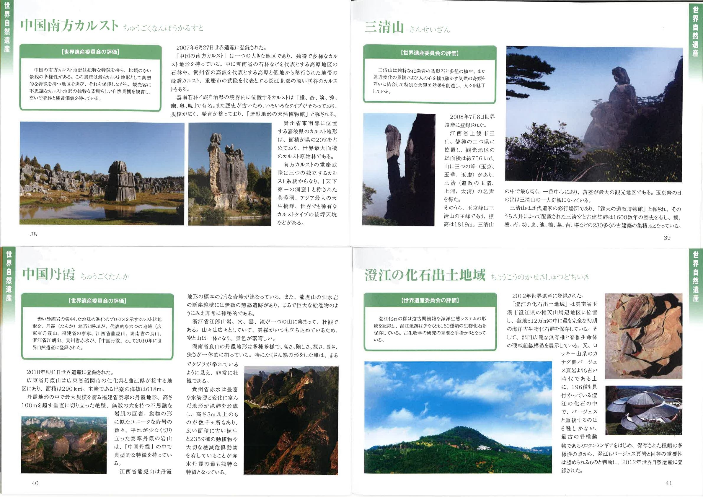 雲南省 澄江の化石産地 雲南省澄江で5億3000万年前のカンブリア紀前期に起きた爆発的な生物進化の証拠となる海生生物の化石が産出された地域。化石は藻類をはじめ、海面動物門から原始的な脊索動物門まで16門、196種におよび、現在の地球上に見られる生物分類群をほぼ網羅する。保存状態が良く、通常は化石として残りにくい柔らかな捕食者までを含むカンブリア紀の海生生物群の完璧な記録であり、生物が生態的地位に適応して進化を遂げた記録である。