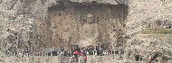 洛陽市南方に位置し、北魏(386~534年)から約400年以上をかけ唐代に完成した石窟寺院群。南北約1kmの断崖絶壁に高さ最大17m最小約2cmのものまで約2,100以上の石窟と10万体以上の仏像等が無数に並び、世界最大の石窟と呼ばれる。