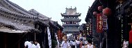 中国に現存する保存状態のよい明~清朝の古城であり、明代から残る煉瓦の城壁、大通り、瓦屋根の民家商店や山西商人(晋商)の発展の象徴でもある中国初の銀行「日升昌」の誕生地等、明代の人々の暮らしを垣間見ることができる。