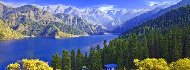 天山山脈は、全長2500km、幅300kmの大山脈で、中国とキルギスの国境にあり、標高7439 mのポベーダ山やカザフスタンとキルギスの国境にある標高7010 m のハン・テングリなどの高山が連なる。新疆ウイグル自治区天山の山々は、雪に覆われ、頂上に氷河を冠した姿が壮観で、原生林や草原、シルダリヤ川とタリム川をはじめとする清流や湖、赤色岩層を特徴とする渓谷などが美しい景観をつくっている。この地域は、地質時代の鮮新世(500万年前~258万年前)から変わらぬ地形が保たれ、生物学的・生態学的な独自の進化が今も継続され、古来の植物種の貴重な生息地であり、絶滅が危惧される種も多い。さらに南には、広大な砂丘と大規模な砂嵐で知られる世界有数の砂漠、タクラマカン砂漠が広がり、灼熱と寒冷、乾燥と湿潤、荒涼と豊穣(ほうじょう)が見事なコントラストをつくり、他に例を見ない壮絶な景観をなしている。