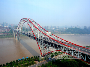 重慶中心部の北東、長江と嘉陵江との合流点に位置、高台からふたつの河が混じり合う様子が見られる場所です。