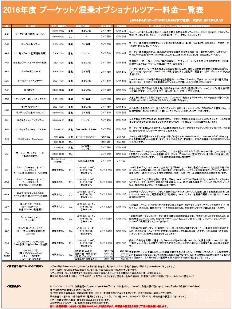 | 1日目 | プーケット | CZ6057 2205 広州→0050+1 プーケット