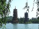 古くから自然の城濠とされてきた桂林市街の4つの湖(杉湖、榕湖、桂湖、木龍湖)が、近年ひとつに結ばれ、船で航行できるようになりました。途中、杉湖の真中にある銅と瑠璃瓦の二つ並ぶ世界一の銅塔と言... |