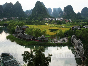 陽朔から15km、桂林寄りにある「少数民族の桃源郷」を主題にしたテーマパークです。 |