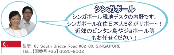 ※シンガポールに1泊して3泊4日のアレンジメントも可能です。お気軽にお問い合わせ下さい