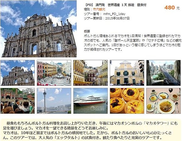 | 名前 | 【航空券+ホテルのみお手配可能】中国マカオ 旅行 世界遺産 カジノ 満喫 2泊3日 |