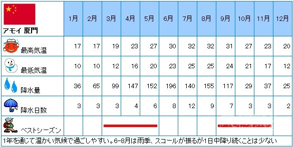 | 1日目 | 厦門 | ※中国の祝日期間(清明節、労働節、端午節)は、高鉄手配ができない可能性がございます。その為、祝日のご参加希望の場合は、事前にお見積もりの上、高鉄発売開始のツアー15日前に高鉄空席があればお手配可能、完売の場合はお手配不可となります。予めご了承の程お願いいたします。(航空券も15日前の高鉄空席確認後にお手配予定)
