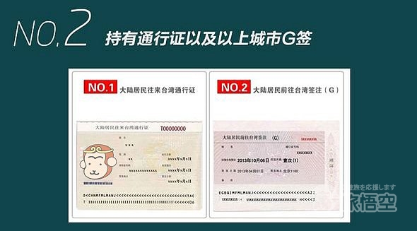 | 入台证 / 台湾通行証 | 1人 | 通过我们订机票,酒店等 | |