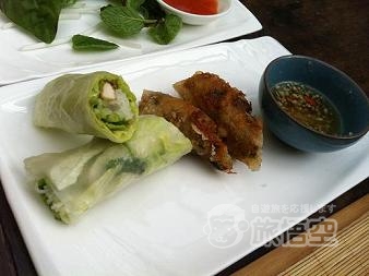 生春巻き&揚げ春巻き付きです。生春巻きは中にお豆腐が入った、ベジタリアン春巻き。 揚げ春巻きは、具がたっぷり。どちらも、ガーリックたっぷりのソースにつけて。 メインのビーフフォー☆ お肉たっぷり!麺が見えないほど! 薄味のお汁に、たっぷりのお肉で満足◎ もやし&バジル&ミントは追加できます。 他には、ポークカツレツ、ベトナムカレーのセットもありました。 見た目は中華?のようでしたが、味はベトナムカレー。ココナッツミルクのマイルドさが、甘い南 国カレーです。スープ、生春巻き、ご飯付き。 2~3人でシェアできる、ランチコースもありました。 お天気が良い日に、行きたいお店です。 ※店内にテーブル席あり。夜は要予約。 |