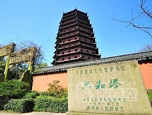 海水の逆流現象による銭塘江の氾濫を鎮めるため、呉越王であった銭の命により970年に建造されました。当時の塔は北宋末期に破壊され、現存するものは1163年に再建されたものです。