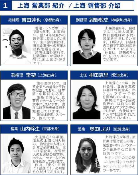 | 上海・華東 | 北京・華北 | 大連・東北 | 西安・西北 | 成都・西南 | 広州・華南 | 香港・マカオ・台北 | |